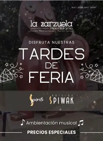 ¡Prepárate para la Feria de Cali! Entre el 25 y 30 de diciembre, todas las tardes, La Zarzuela te ofrece momentos especiales con la carta de nuestro bar para entonarte con tus amigos al son de la música antes de salir a rumbear en nuestra famosa feria.